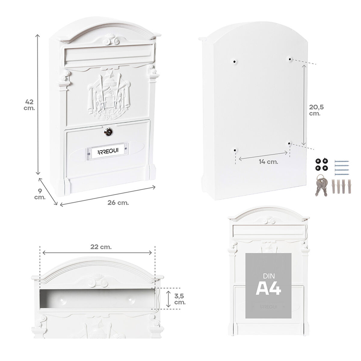 Brevlåda Arregui Vit 26 X 9 X 42 CM Metall Aluminium